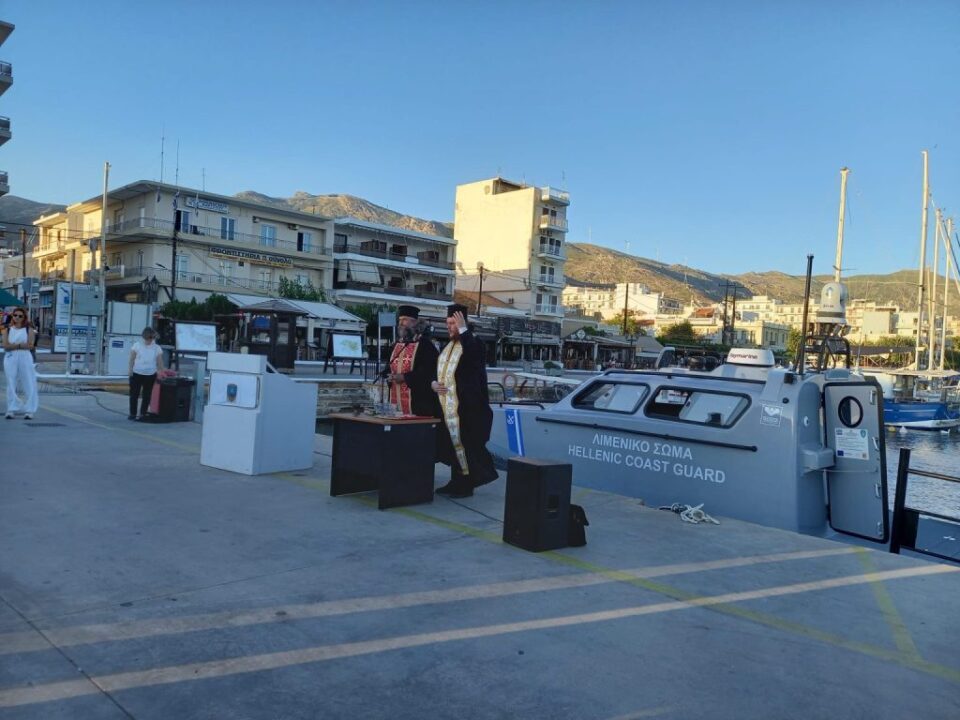 Πραγματοποιήθηκε ο αγιασμός του ολοκαίνουριου ταχύπλοου σκάφους που απέκτησε το Λιμεναρχείο Καρύστου, παρουσία του δημάρχου Καρύστου Λευτέρη Ραβιόλου.