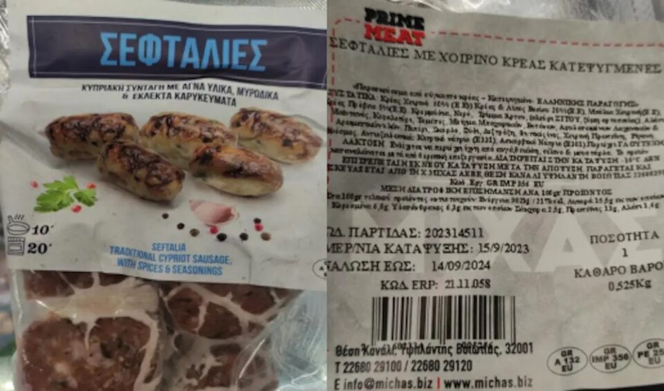 Συγκεκριμένα ο Φορέας και ειδικότερα η Περιφερειακή Διεύθυνση Κρήτης, κατά τη διενέργεια ελέγχων στο πλαίσιο του Προγράμματος «Επίσημος Έλεγχος Μικροβιολογικών Κριτηρίων Ασφάλειας Τροφίμων» έτους 2023, προέβη σε δειγματοληψία του προϊόντος, «ΣΕΦΤΑΛΙΕΣ ΜΕ ΧΟΙΡΙΝΟ ΚΡΕΑΣ ΚΑΤΕΨΥΓΜΕΝΕΣ», με αριθ. παρτίδας: 202314511 και ημ. ανάλωσης έως: 14.09.24, που παρασκευάζεται από την εταιρεία «Χ. ΜΙΧΑΣ ΑΕΒΕ» στη Θέση Κανάλι, Υψηλάντη Βοιωτίας.