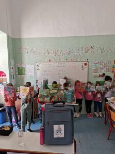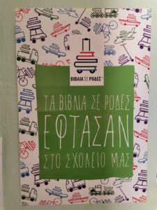 Με τη συμμετοχή του σχολείου μας στο πρόγραμμα ”Βιβλία σε ρόδες”, οι μαθητές έχουν την ευκαιρία να εμπλουτίσουν το λεξιλόγιό τους, να εμπνευστούν από τις εικόνες και τις ιστορίες που περιέχονται στα βιβλία και να ανακαλύψουν νέους κόσμους μέσα από την ανάγνωση. Το πρόγραμμα αυτό αποτελεί μια εξαιρετική ευκαιρία για την ενίσχυση της αγάπης για τα βιβλία και την προώθηση της ανάγνωσης στο σχολικό περιβάλλον.