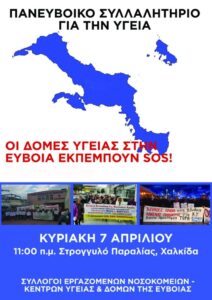 Η κατάσταση στις Δομές Υγείας της Εύβοιας είναι επικίνδυνη για το λαό και τους εργαζόμενους! Τα Νοσοκομεία Χαλκίδας, Καρύστου, Κύμης και τα Κέντρα Υγείας σε Χαλκίδα, Ψαχνά, Μαντούδι, Ιστιαία, Αλιβέρι δεν μπορούν να καλύψουν τις ανάγκες του λαού της περιοχής. Θεραπευτήριο Αυλίδας, δομές ψυχικής υγείας και αποκατάστασης ”φυτοζωούν”.